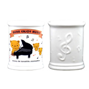 可愛い猫と鍵盤柄の陶器ペン立てです。